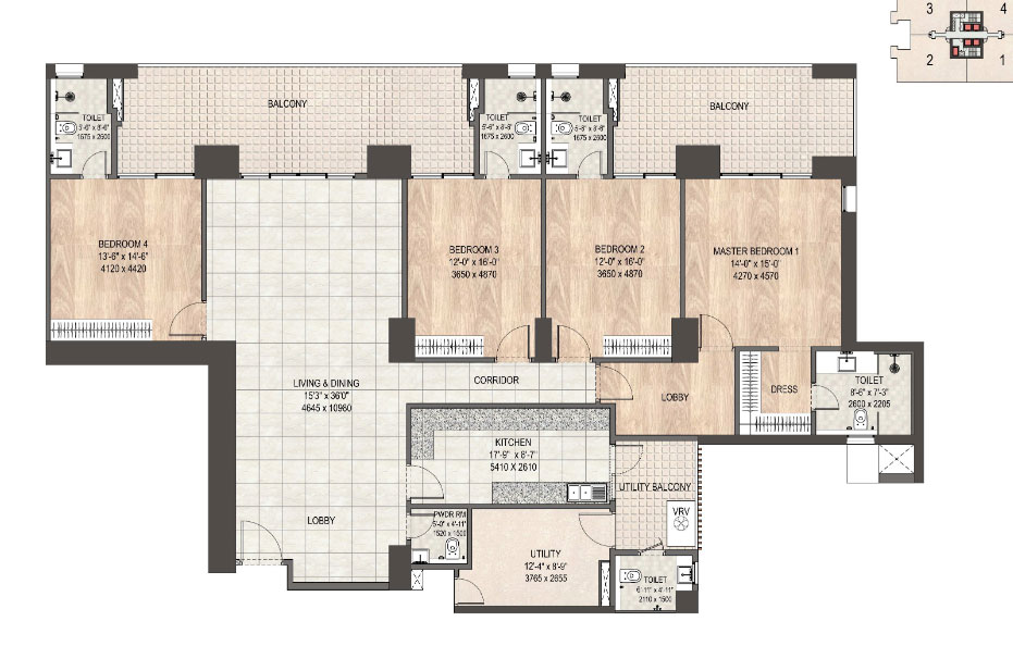 The project offers spacious 3 BHK luxury apartments with high efficiency layouts.